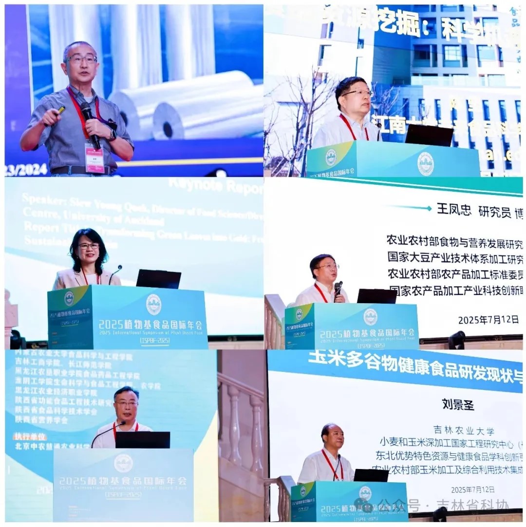 年会以“植领未来 匠心铸基 与食俱进”为主题,邀请中国科学院院士、深圳大学教授吴奇,中国工程院院士、江南大学教授陈坚,奥克兰大学教授Siew Young Quek,农业农村部食物与营养发展研究所党委副书记、所长、研究员王凤忠,华南理工大学教授赵谋明,俄罗斯科学院外籍院士、吉林农业大学教授刘景圣等6名专家分别以《素食的口感和大分子加工》《食品资源挖掘:科学机遇与战略任务》《Transforming Green Leaves into Gold: From Underutilized Biomass to Sustainable Protein》《大豆加工产业高质化发展路径分析》《富含Arg核桃肽的改善记忆功效与应用》《玉米多谷物健康食品研发现状与未来趋势》为题作主旨报告,江连洲、郜海燕等多位国内外院士专家围绕植物基食品研发与产业创新、新型替代蛋白资源开发与应用、大豆植物基制品高值化加工与利用等多个前沿领域展开深入研讨。年会设置了植物基食品研发与产业创新等9个分会场,百余位专家、学者作报告,涵盖了从基础研究到产业应用的各个层面,为食品领域科技工作者搭建了广泛交流、探讨合作的平台。
